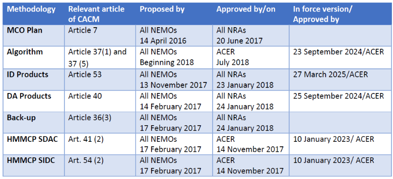 On 30 January 2020 the ID Products methodology was approved via the decision 05/2020. Most recently the DA Products Methodology was updated with ACER Decision 03-2025.