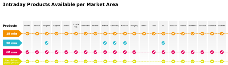 60-min products are available in every SIDC country, except Spain and Portugal.