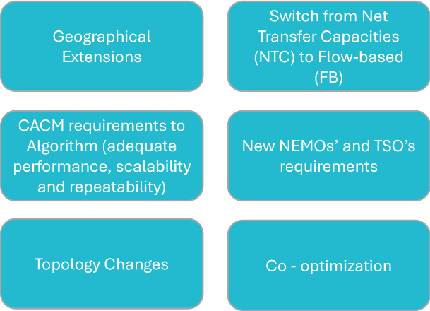 PCR EUPHEMIA aims at full compliance with CACM. Furthermore, PCR EUPHEMIA is used in the context of Single Intraday Coupling for the execution of intraday auctions for the pricing of cross-border capacity (IDAs). Notwithstanding the important achievements of the PCR EUPHEMIA, cycles of Research and Development (R&D) are being executed in order to support further extensions of the market coupling, new market designs and a higher quality of performance, such as:
